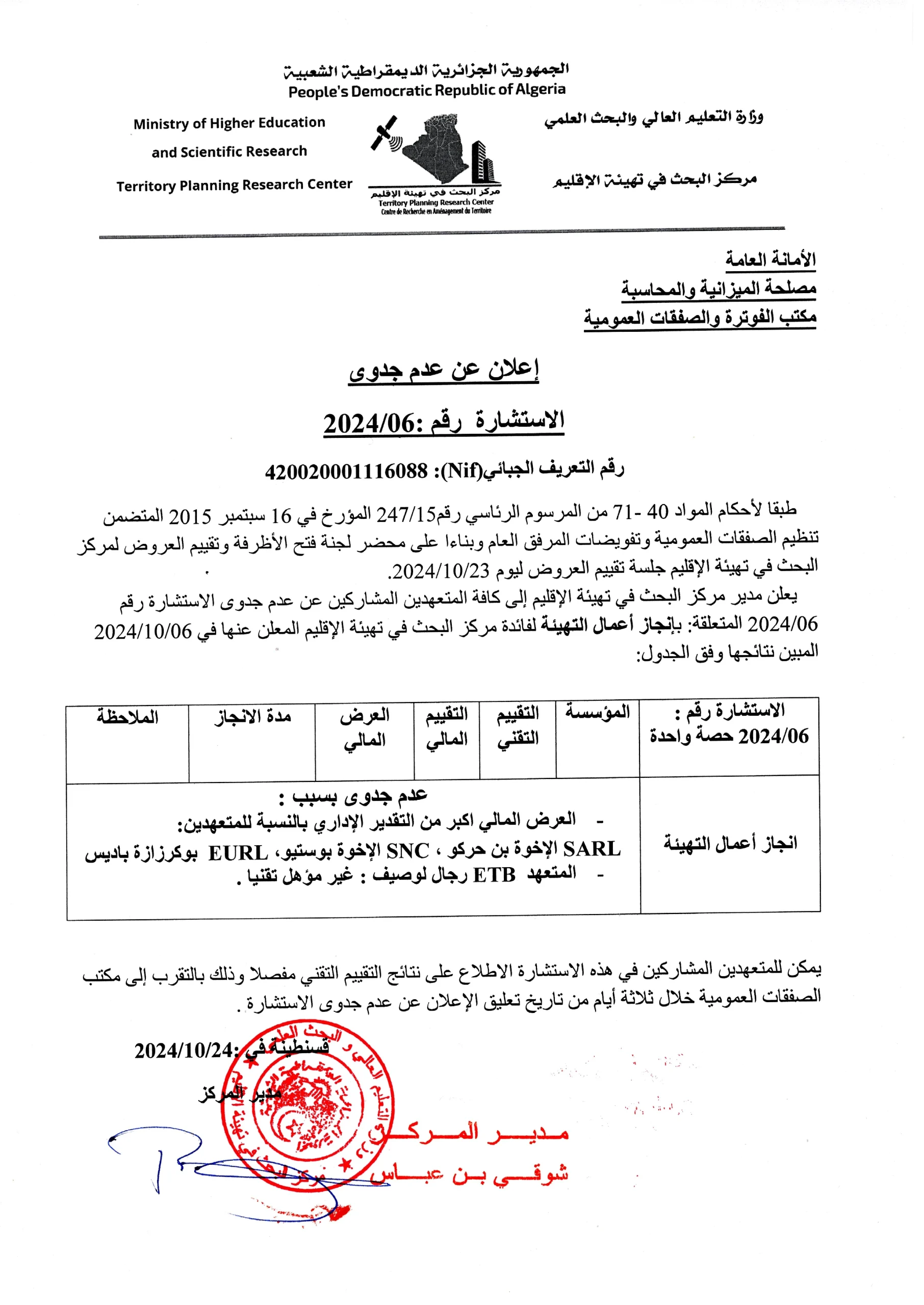 اعلان استشارة رقم 6 / 20246 أكتوبر 2024الذكرى السبعون لاندلاع ثورة التحرير المجيدة1 نوفمبر 2024 24 أكتوبر 2024 الأصناف الاستشارات كلمات استدلالية Partager34 مقالات مشابهة5 فبراير 2026إعلان عن عدم جدوى الاستشارة رقم 2026/01لمعرفة المزيد2 فبراير 2026إعلان إستشارة 03 / 2026لمعرفة المزيد11 يناير 2026إعلان إستشارة 02 / 2026لمعرفة المزيد