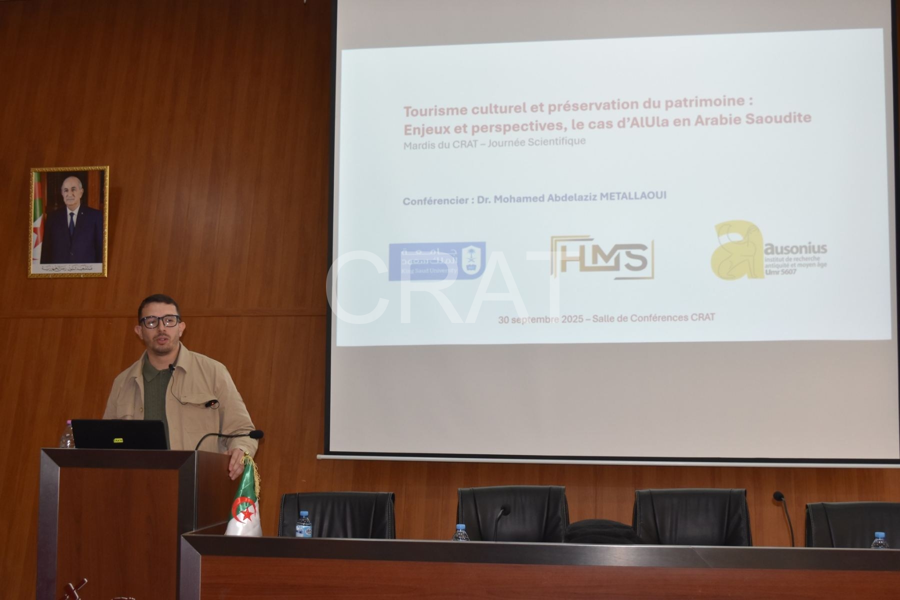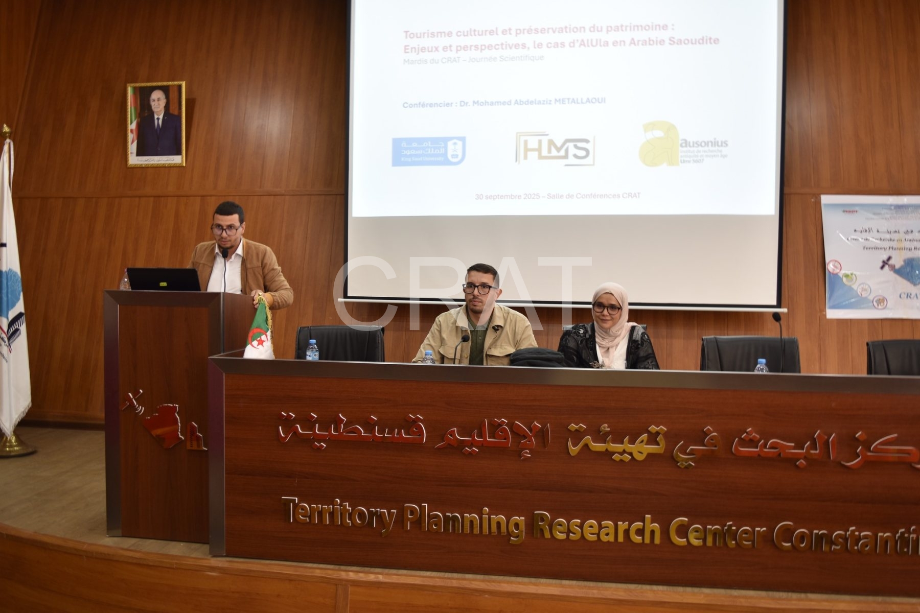 شهد مركز البحث في تهيئة الإقليم يوم الثلاثاء 30 سبتمبر 2025 فعالية استثنائية ضمن تقليد “ثلاثاء المركز“، حيث استضاف الدكتور محمد عبد العزيز ميتلاوي الذي أثرى الحضور بمحاضرة قيّمة تحت عنوان” السياحة الثقافية والحفاظ على التراث: التحديات والآفاق، حالة العلا في المملكة العربية السعودية“.