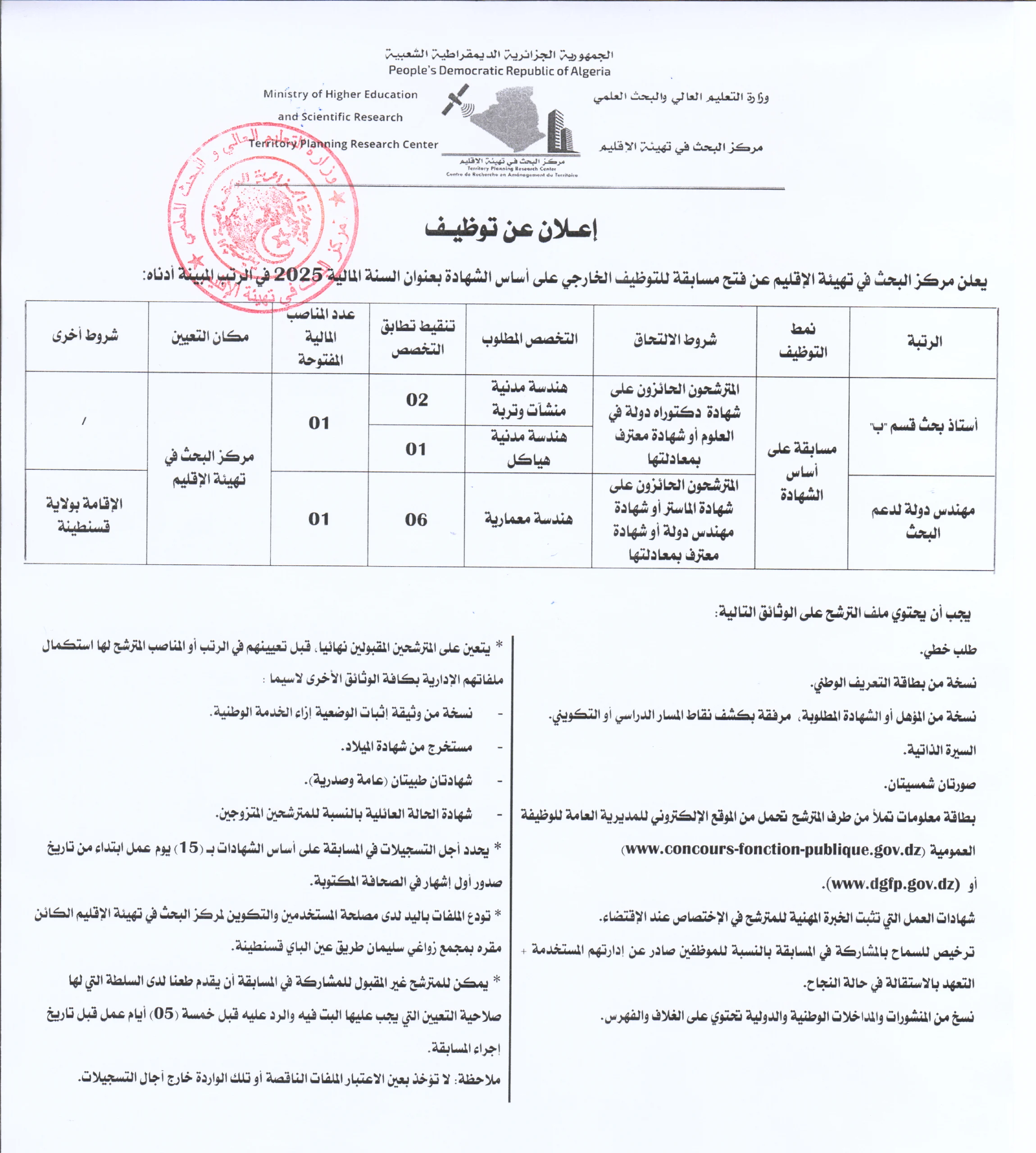 السياحة الثقافية وحفظ التراث1 أكتوبر 2025يوم الهجرة — ذكرى ألم وافتخار17 أكتوبر 2025 7 أكتوبر 2025 الأصناف الأحداث كلمات استدلالية يعلن مركزالبحث في تهيئة الإقليم CRAT عن توظيف خارجي على أساس الشهادة في مختلف الرتب للسنة المالية 2025 . بالتوفيق للجميع Partager39 مقالات مشابهة2 فبراير 2026إعلان إستشارة 03 / 2026لمعرفة المزيد11 يناير 2026إعلان إستشارة 02 / 2026لمعرفة المزيد11 يناير 2026إعلان إستشارة رقم 2026/01لمعرفة المزيد