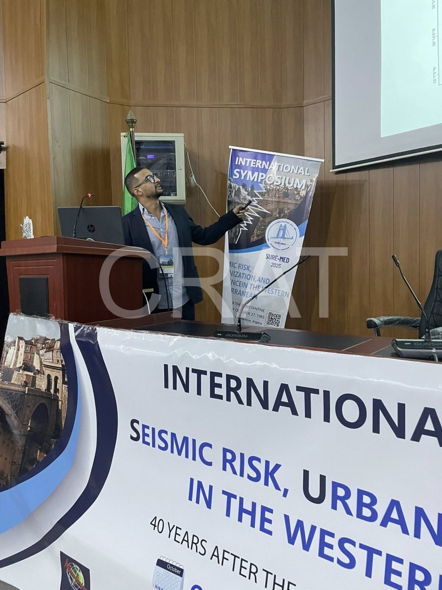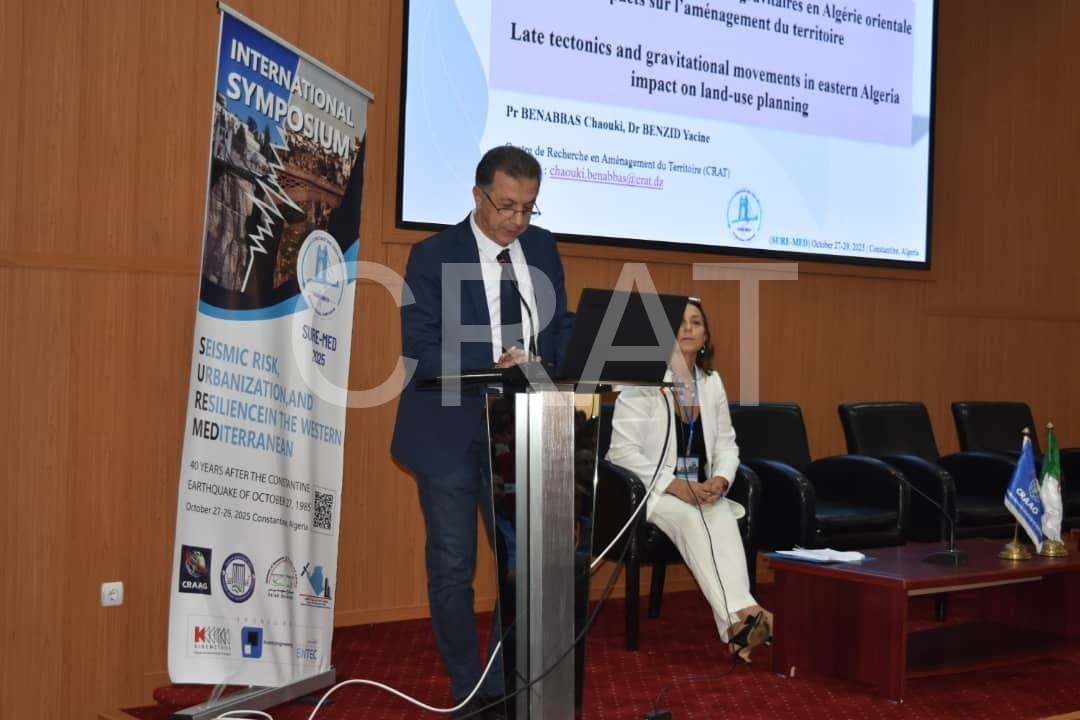 Le Centre de Recherche en Aménagement du Territoire (CRAT) a pris part activement aux travaux du colloque international SURE-MED 2025, organisé du 27 au 29 octobre 2025 à l’Université de Constantine 1, à travers plusieurs communications scientifiques de qualité et débats enrichissants animés par ses chercheurs. Ces contributions ont permis d’enrichir les échanges autour des thématiques des risques naturels et de l’aménagement urbain durable.