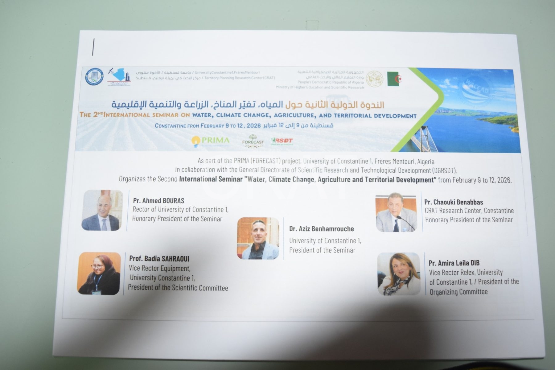 L’Université Constantine 1 – Frères Mentouri a enregistré, le lundi 9 février 2025, le lancement remarquable et réussi des travaux du colloque international organisé dans le cadre du projet PRIMA (FORECAST), intitulé : « Eau, changements climatiques, agriculture et développement régional ».
